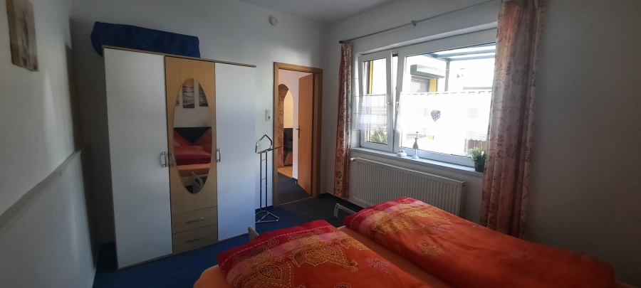 Das 2. Schlafzimmer ist ausgestattet mit 1 Einzelbett und 1 Einzelbett mit Rollbett (für die 5. Person - Kind), 3türigem Kleiderschrank mit Spiegel,