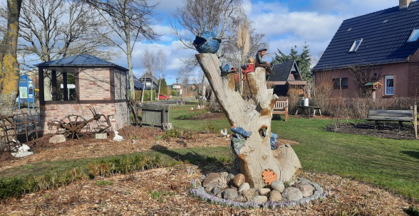 Ein kleiner Spieelplatz lädt Kinder zum Spielen ein.